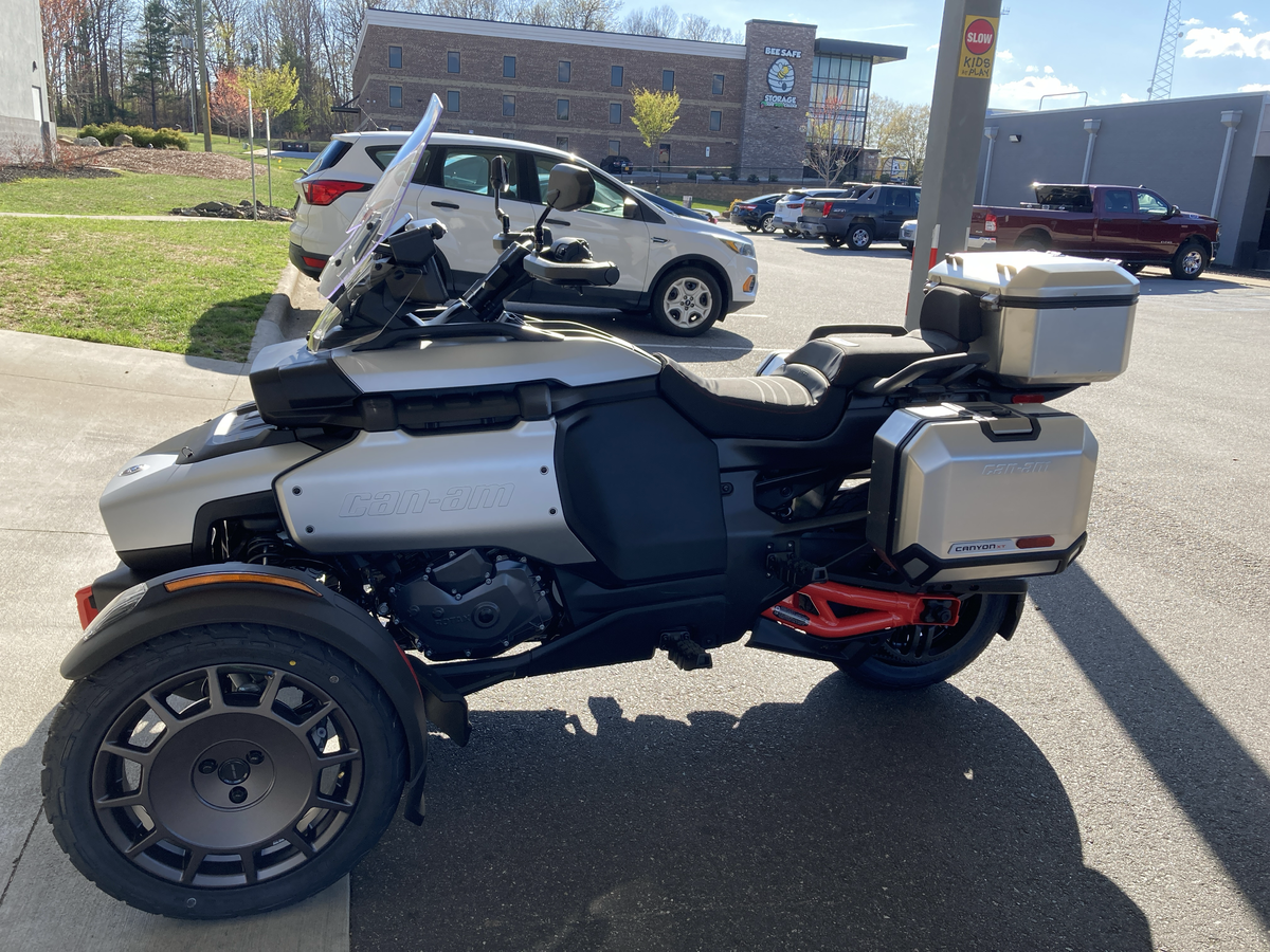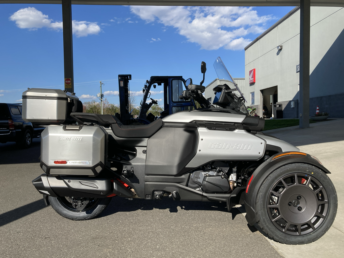 The Canyon XT is perfect for two, with a passenger backrest, self-leveling rear suspension, LinQ-ready aluminum side cases, heated grips, and more. With the XT, you're ready for anything!